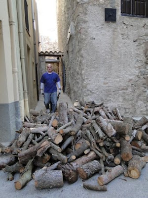 Morador abastecendo de lenha sua residência. A previsão era de uma noite muito iceberg,