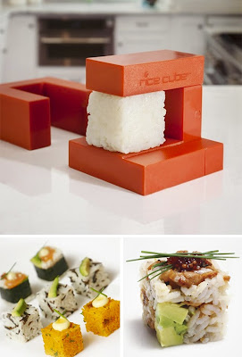 Um molde plástico e lúdico para facilitar sua vida. Em poucos minutos você se transforma num super sushiman/woman e apresenta para os amigos, num autêntico jantar Japa, invenções gastronômicas milimetricamente quadradas.